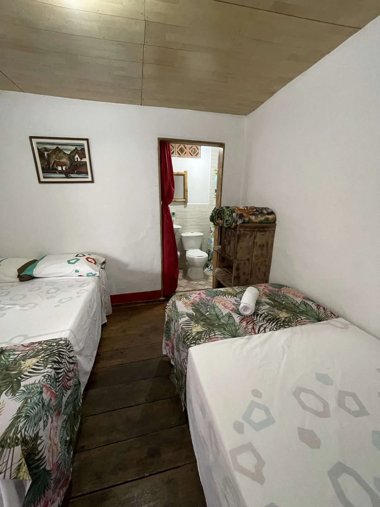 Te invitamos a disfrutar de una estancia única en nuestra habitación ecológica Cocu, diseñada especialmente para tres personas. Equipada con una cama doble cómoda y una cama sencilla, ofrece un descanso placentero en un ambiente tranquilo y sostenible. El baño privado cuenta con productos de higiene, pensados para cuidar tanto de ti como del planeta. La habitación está decorada en materiales con detalles en madera, creando una atmósfera cálida y armoniosa. Además, las amplias ventanas permiten disfrutar de la luz natural, manteniendo un ambiente fresco y saludable, ideal para relajarte y conectar con la naturaleza durante tu estancia