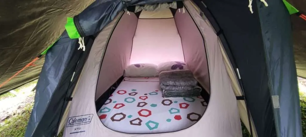 Cada una de nuestras Carpas se entrega equipada con colchoneta, cobijas, sábanas y almohadas.